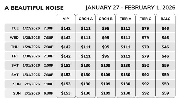 A Beautiful Noise is a vibrant jukebox musical that tells the story of Neil Diamond’s rise from a young, struggling songwriter to global icon. Through his legendary hits, the show explores his personal battles, fame, and enduring musical legacy.